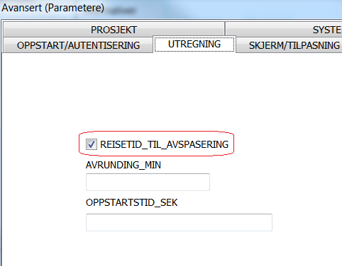•Velg Utregning, og kryss av for REISETID_TIL_AVSPASERIING