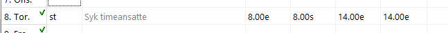 I tillegg må du registrere i timelisten hvor mange timer det var forventet at den timeansatte skulle jobbe. Dette er viktig for at lønnen skal bli riktig. Systemet skal telle timene man ikke er på jobb. Derfor registreres det som følger.