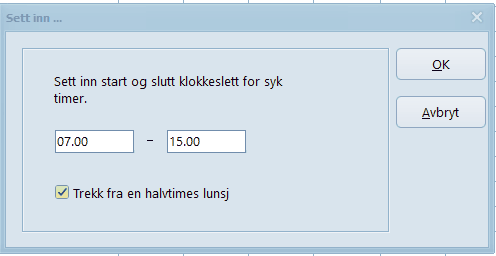 Hvis det skal trekkes fra en halvtimes lunsj registrer systemet en halvtime mindere enn det som angis.